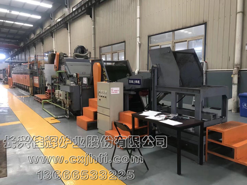 無(wú)馬弗托輥式網(wǎng)帶爐熱處理生產(chǎn)線 此設(shè)備可根據(jù)用戶要求進(jìn)行定制、定做,服務(wù)熱線:13666533225 1.本熱處理生產(chǎn)線采用臺(tái)灣爐型、技術(shù)、標(biāo)準(zhǔn)制造、檢驗(yàn),關(guān)鍵部品采用進(jìn)口產(chǎn)品,國(guó)內(nèi)組裝,整體質(zhì)量達(dá)到進(jìn)口同等水平。 2.廣泛適用于各種標(biāo)準(zhǔn)件、緊固件、軸承鏈條工具、齒輪及其他小型金屬零件在氣氛保護(hù)狀態(tài)下進(jìn)行批量淬火、調(diào)質(zhì)、滲碳等熱處理。 生產(chǎn)線特長(zhǎng): 1.我公司擁有一支經(jīng)驗(yàn)豐富的設(shè)計(jì)隊(duì)伍。我公司所銷(xiāo)售的產(chǎn)品可控氣氛及保護(hù)氣氛熱處理爐占98%,人機(jī)界面計(jì)算機(jī)控制占81%。能耗均低于GB/T17358規(guī)定的工藝電能耗標(biāo)準(zhǔn)。 2.本設(shè)備結(jié)構(gòu)先進(jìn),采用全套進(jìn)口技術(shù)、標(biāo)準(zhǔn)制造、檢驗(yàn),整體質(zhì)量達(dá)到進(jìn)口同等水平,選用國(guó)內(nèi)外優(yōu)質(zhì)材料和元器件而制造的托輥網(wǎng)帶式連續(xù)熱處理爐。 3.本設(shè)備適用于各種中小型金屬零件的批量熱處理生產(chǎn),自動(dòng)化程度高,勞動(dòng)強(qiáng)度低,生產(chǎn)效率高。 4.設(shè)備機(jī)械性能穩(wěn)定,故障率低,操作簡(jiǎn)便。 5.現(xiàn)場(chǎng)工作環(huán)境清潔、無(wú)污染,符合綠色環(huán)保產(chǎn)品要求。 6.淬火爐采用直噴式燒嘴輻射管加熱、回火爐采用直噴式燒嘴加熱。 7.淬、回火爐網(wǎng)帶運(yùn)行采用托輥同步傳動(dòng),使網(wǎng)帶運(yùn)行時(shí)承受Z小張力,提高使用壽命;網(wǎng)帶運(yùn)行連續(xù)均勻,與間斷進(jìn)給的傳動(dòng)相比消除了網(wǎng)帶返退缺陷和工件經(jīng)過(guò)落料口因時(shí)間不同而引起的硬度不均勻的現(xiàn)象。 8.淬火爐前端增設(shè)預(yù)熱室,節(jié)省能量消耗;整機(jī)功率配備較低,熱能利用效率高,節(jié)能環(huán)保是本公司設(shè)備的特點(diǎn)。 9.淬火爐輻射管燒嘴為德國(guó)LBE公司技術(shù)的產(chǎn)品,點(diǎn)火電極、點(diǎn)火控制器、燃?xì)怆姶砰y、空氣電磁閥等均為進(jìn)口技術(shù)產(chǎn)品,使用可靠、穩(wěn)定。 10.生產(chǎn)線具備完整的電氣自動(dòng)控制、安全聯(lián)鎖和報(bào)警功能。可編程存儲(chǔ)100多個(gè)工件的工藝程序數(shù)據(jù),工藝參數(shù)、程序可隨時(shí)修改、增刪;整套系統(tǒng)按照編制好的程序全自動(dòng)自動(dòng)運(yùn)行,在需要時(shí)也可實(shí)現(xiàn)手動(dòng)運(yùn)行;控制系統(tǒng)顯示屏完整顯示系統(tǒng)運(yùn)行過(guò)程狀況,并能實(shí)現(xiàn)運(yùn)行過(guò)程的連續(xù)記錄